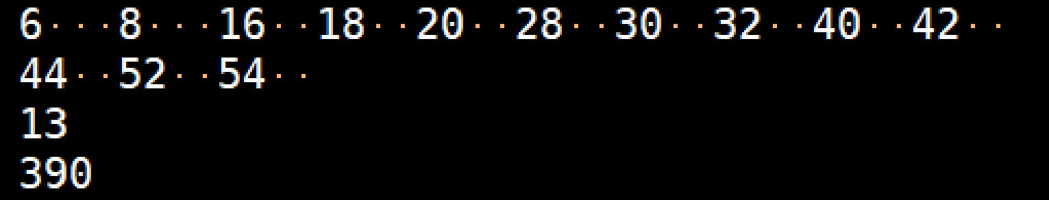 - 輸出兩個正整數之間 $4$ 或 $6$ 的倍數(但不包括 $4$ 和 $6$ 的公倍數),格式規定:
